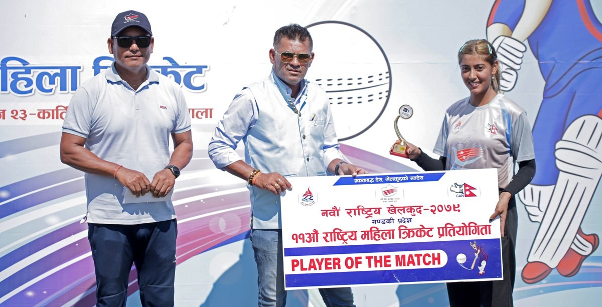 काठमाडौं । पोखरामा जारी नवौं राष्ट्रिय खेलकुद अन्तर्गत महिला क्रिकेट प्रतियोगितामा विहीबार सशस्त्र प्रहरी बलको एपिएफ र मधेश प्रदेश बिजयी भएका छन् । विहीबारको पहिलो खेलमा एपिएफले गण्डकी प्रदेशलाई र दोश्रो खेलमा मधेश प्रदेशले सुदूरपश्चिम प्रदेशलाई पराजित गर्दै बिजयी भएका हुन् ।