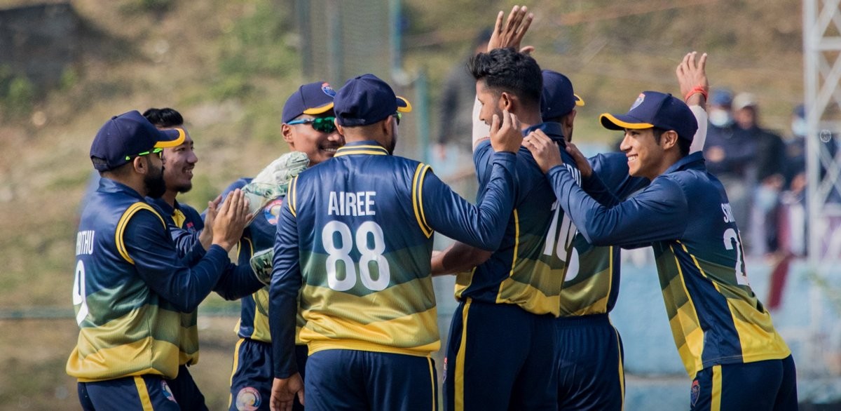 यस्तै, विवेक यादवले १२ र नन्दन यादवले अविजित ११ रन बनाउनुबाहेक अन्य खेलाडीले दोहोरो अंकमा रन बनाउन सकेनन् । ओपनर अर्जुन साउद १ रन, हुसेन तालत ८ रन, कप्तान रोहित पौडेल २ रन र राज नन्नन शून्यमा आउट भए ।