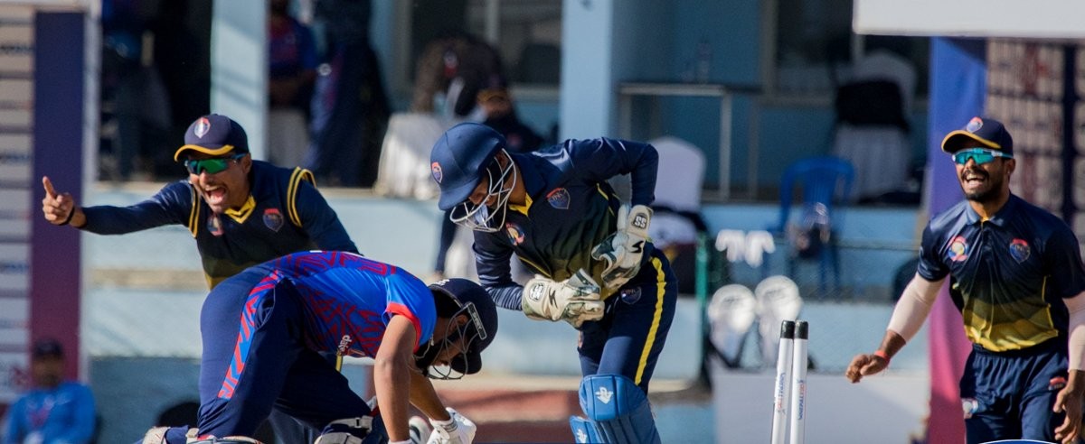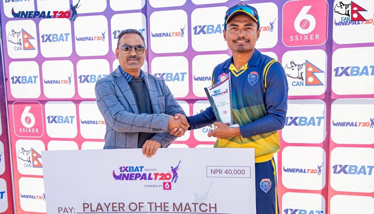 त्यस्तै, युवा अलराउन्डर विवेककुमार यादवले आक्रामक पारी खेले । १८ बलको सामना गरेका उनले ३ छक्का र ३ चौकाको मद्दतमा अविजित ४६ रन बनाएका थिए । हुसेन तलतले ३८ र राज नाननले २३ रन जोडे । काठमाडौंका लागि कमलसिंह ऐरी र अनिल खरेलले समान २/२ विकेट लिदा अविनाश बोहरा र गौतम केसीले समान १/१ विकेट लिए ।