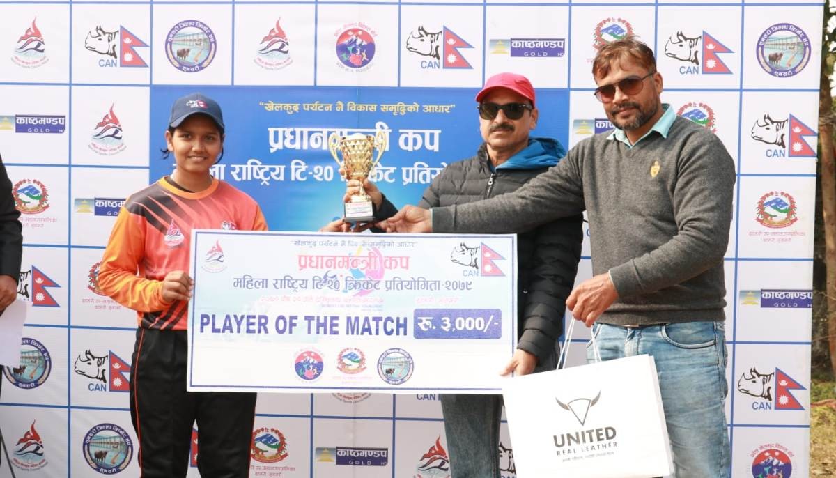 ओपनर लक्ष्मी चौधरीले १२ रन जोड्दा आश्मा पुलमी मगर र कप्तान सरस्वती घर्तिमगरले समान ११/११ रन जोडे । मधेसकी भुमी सिंहले दुई विकेट लिँदा अमिरन निशाले एक विकेट लिइन् ।
