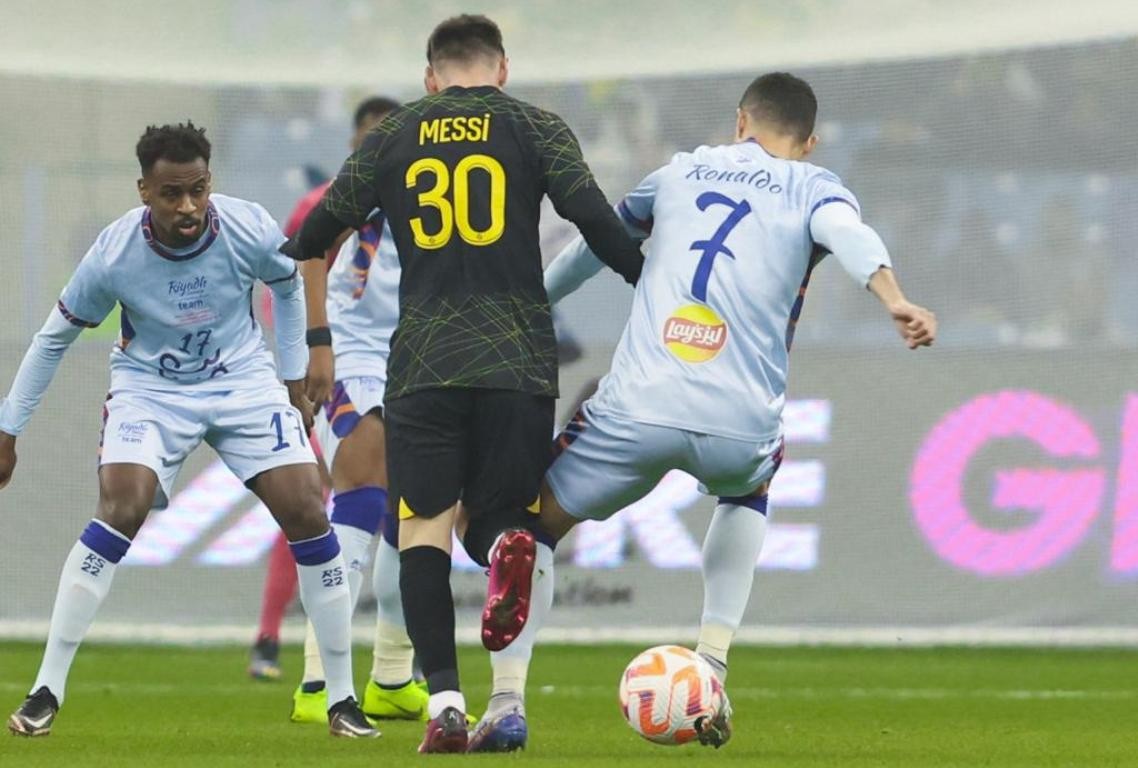 खेलको तेस्रो मिनेटमा नेइमारले निकालेको पासमा मेस्सीले गोल गर्दै पिएएसजीलाई सुरुआती अग्रता दिलाएका थिए । खेलको ३१औं मिनेटमा पिएसजीका गोलकिपर किलोर नाभासले रोनाल्डोलाई १८ यार्ड बक्सभित्र फउल गरेपछि रियादले पेनाल्टी पायो । ३४ औं मिनेटमा रोनाल्डोले पेनाल्टीबाट गोल गर्दै रियादलाई १-१ गोलको बराबरीमा ल्याए ।