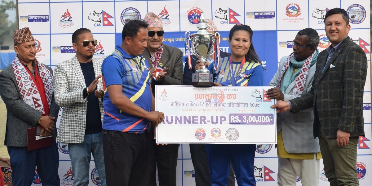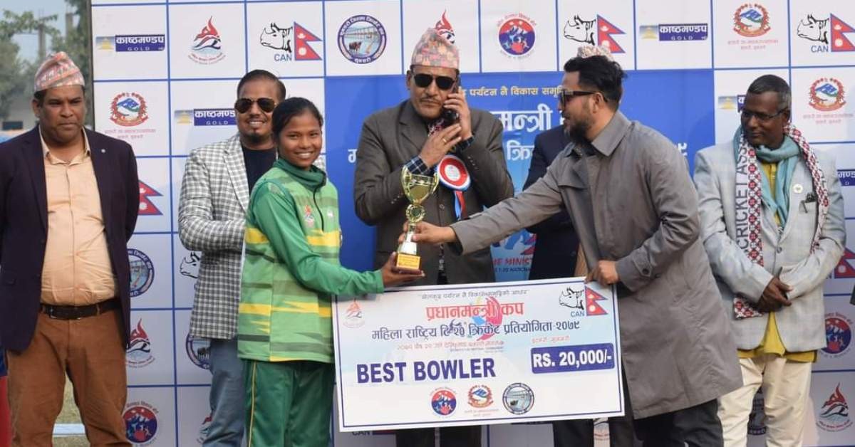 काठमाडौं । सुदुरपश्चिम प्रदेशले प्रधानमन्त्री कप महिला राष्ट्रिय टी–२० क्रिकेट प्रतियोगिताको उपाधि जितेको छ । इटहरीको जनता क्रिकेट पार्क मैदानमा शनिबार भएको फाइनल खेलमा प्रदेश एकलाई ६ विकेटले हराउँदै सुदुरपश्चिम च्याम्पियन बनेको हो ।