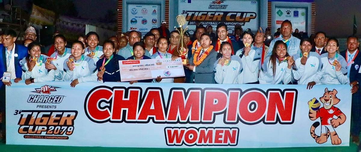 काठमाडौं । पोखरामा सम्पन्न तेस्रो टाइगर कप राष्ट्रिय तथा अन्तर्राष्ट्रिय आमन्त्रित खुल्ला क्लब च्याम्पियनसिप महिला तथा पुरुष भलिबल प्रतियोगिता २०७९ को पुरुषतर्फ गण्डकी प्रदेश र महिलातर्फ एपिएफ क्लब च्याम्पियन बनेका छन् ।
