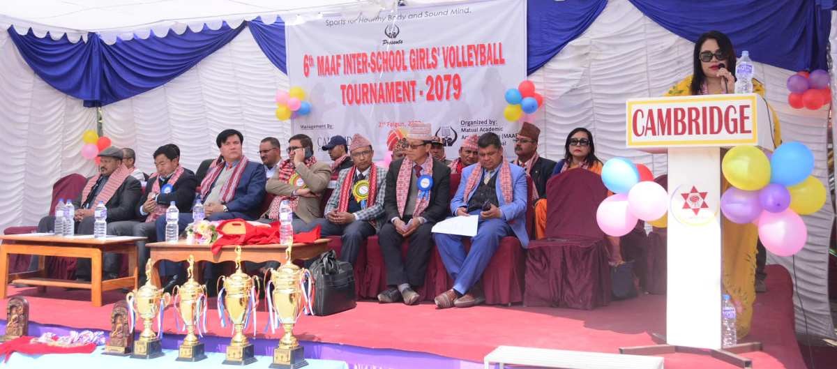 गत मंगलबारदेखि सुरु भएको प्रतियोगितामा प्याब्सन अन्तरगत माफ क्लस्टरका विभिन्न ११ स्कुलको सहभागिता रहेको थियो । म्याचुएल एकेडेमिक एक्टिभिटिज फोरम (माफ) को आयोजनामा भइरहेको प्रतियोगिताको सुरुवातदेखि नै क्याम्ब्रिजले व्यवस्थापन गर्दै आइरहेको छ । माफले २०७२ देखि महिला भलिबल प्रतियोगिता गर्दै आइरहेको छ । पछिल्लो समय कोभिडको कारण आयोजना हुन सकेको थिएन ।