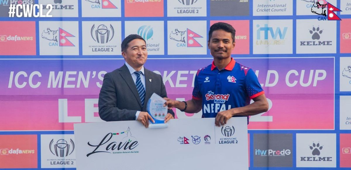 नेपालका लागि पूर्वकप्तान सन्दीप लामिछानेले १० ओभरमा ४५ रन दिएर महत्वपूर्ण ४ विकेट लिएका थिए । झण्डै ६ महिनापछि मैदान फर्किएका उनले यो सिरिजमा ४ खेलमा १३ विकेट लिए । करण केसीले तीन विकेट लिँदा कुशल मल्ल र ललित राजवंशीले समान एक/एक विकेट लिएका थिए ।