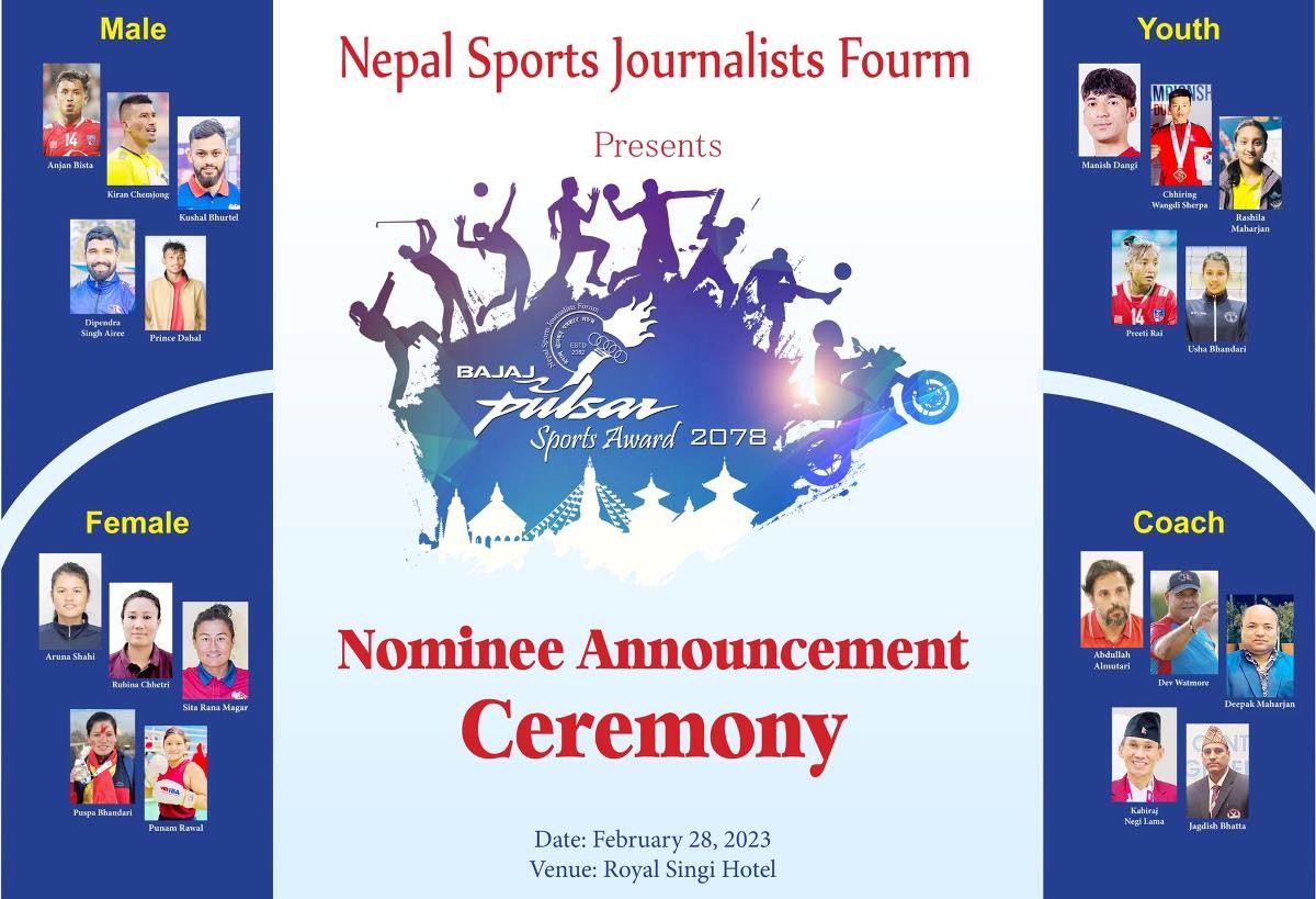 यस अन्तर्गत फुटबलका अन्जन विष्ट, क्रिकेटका आसिफ सेख, भलिबलकी उषा भण्डारी, पौडी डुवाना लामा र टेनिसकी अभिलाषा विष्ट मनोनयनमा परेका छन् । यसबाहेक अन्य विधा पारा एथलिट सम्मान, स्पेसल अवार्ड, लाइफटाइम एचिभमेन्ट अवार्ड र एसियन स्पोट्स जर्नालिस्ट अवार्डको विजेता भने फागुन २३ गते सार्वजनिक गरिनेछ ।