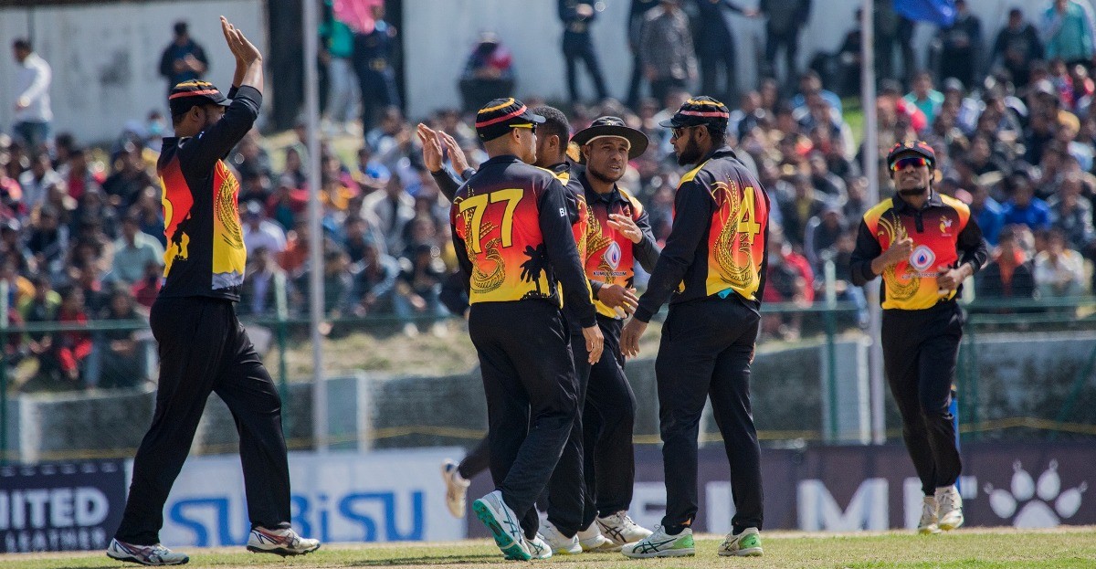 पपुवा न्युगिनी (पीएनजी)का लागि सेमो कमियाले ९.१ ओभरमा ३८ रन खर्चेर ५ विकेट लिए । राइली हेकुरेले १० ओभरमा ५० रन खर्चेर ३ विकेट लिएका थिए । एलेइ नाओले एक विकेट लिए ।