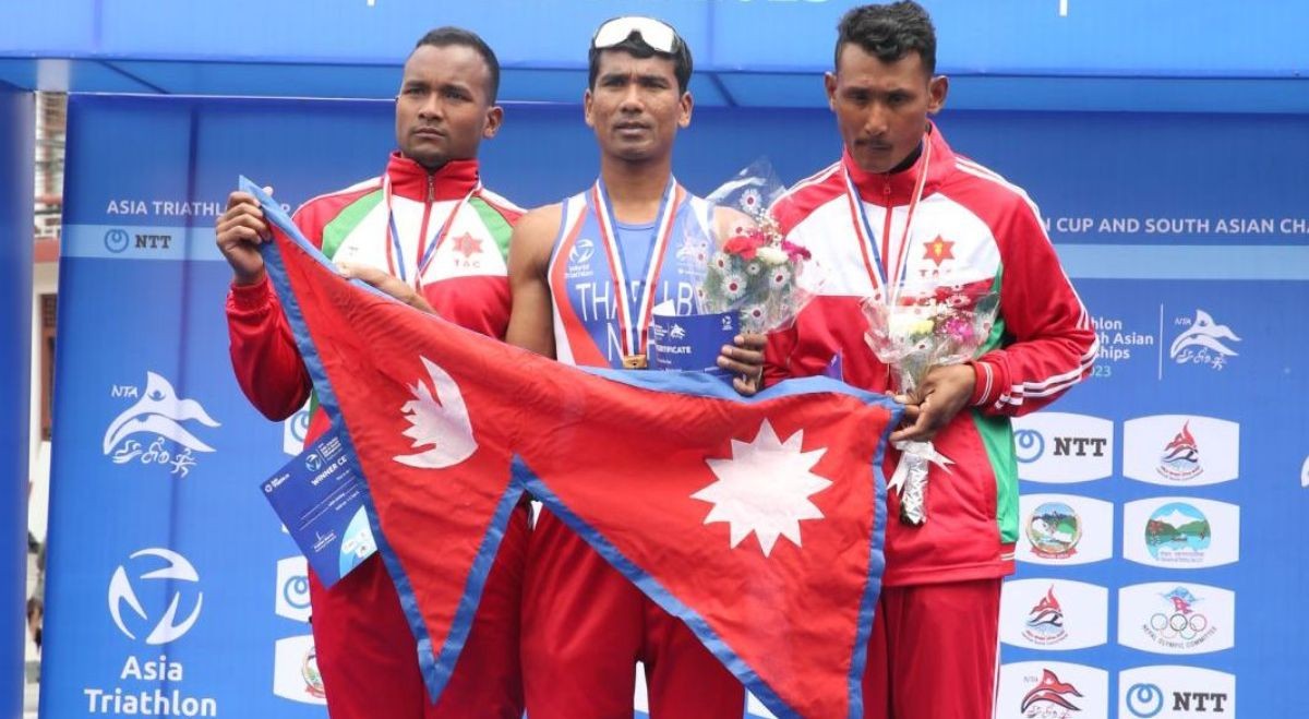 दक्षिण एशियन च्याम्पियनसिप अन्तरगत जुनियर ट्राईथलनमा भारतले एकलौटी पार्यो । भारतका खुन्द्रकपाम नगन्बा मैतेले निर्धारित दुरी १ घन्टा २ मिनट ४६ सेकेन्ड समयका साथ पुरा गर्दै पहिलो, पार्थ मिराज १ घन्टा ६ मिनट ४२ सेकेन्ड समयका साथ दोश्रो र श्रीदथ सुधिर १ घन्टा १० मिनट २६ सेकेन्ड समयका साथ तेश्रो भए । महिला तर्फ भारतकी संजना सुनिल जोशी १ घन्टा १२ मिनट २१ सेकेन्डका साथ पहिलो, नेपालकी श्रेवी महर्जन १ घन्टा १८ मिनटका सथा दोश्रो र भारतकी देवकी शर्मा १ घन्टा २७ मिनट ८ सेकेन्डका साथ तेश्रो भए ।