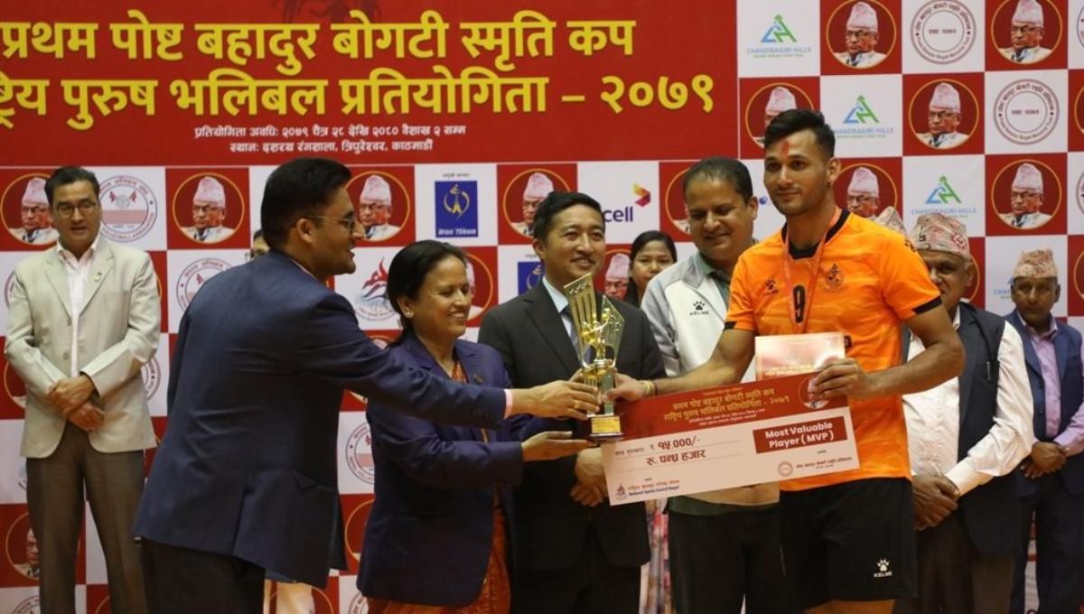 राखेपको विशेष सहयोग तथा नेपाल भलिबल संघको प्राविधिक सहयोगमा भएको प्रतियोगितामा एपीएफका टेकराज अवस्थी सर्वोत्कृष्ट खेलाडी घोषित भए । उनले १५ हजार नगद पुरस्कार प्राप्त गरे । अन्य विधागततर्फ स्पाइकरमा आर्मीका धनबहादुर भट्ट, लिब्रोमा एपीएफका विनोद चन्द, सेटरमा एपीएफका लोकेन्द्र गिरी, ब्लकरमा एपीएफका सुनिल घर्ती मगर, सर्भरमा पुलिसका इम राना मगर तथा प्रशिक्षकमा एपीएफका महेशप्रसाद चौधरी उत्कृष्ट चुनिए । उत्कृष्ट सबैले जनही १० हजार नगद पुरस्कार जिते ।