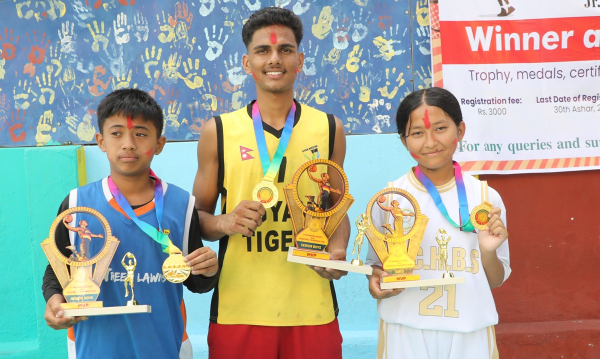 काठमाडौं । ज्ञान निकेतन, ग्रिनलन्स र बौद्ध चिल्ड्रेन हेभनले दोश्रो काठमाडौं जेभियर्स पब्लिक थ्री बाइ थ्री बास्केटबल प्रतियोगिताको उपाधि बिहीबार जितेका छन् । ज्ञान निकेतन सिनियर ब्वाइज, ग्रिनलन्स जुनियर ब्वाइज र बौद्ध सिनियर गर्ल्समा च्याम्पियन बनेका हुन् ।