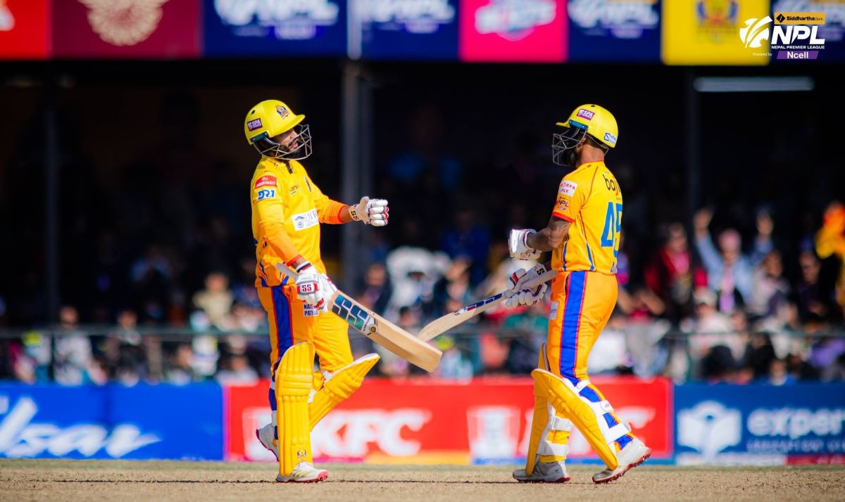 काठमाडौं । नेपाल प्रिमियर लिग (एनपीएल) सिजन–२ मा सुदूरपश्चिममाथि शानदार जित निकाल्दै विराटनगर किंग्स क्वालिफायरमा प्रवेश गरेको छ । शनिबारको भएको खेलमा विराटनगरले सुदूरपश्चिम रोयल्सलाई ६ विकेटले हराउँदै क्वालिफायरमा प्रवेश गरेको हो ।