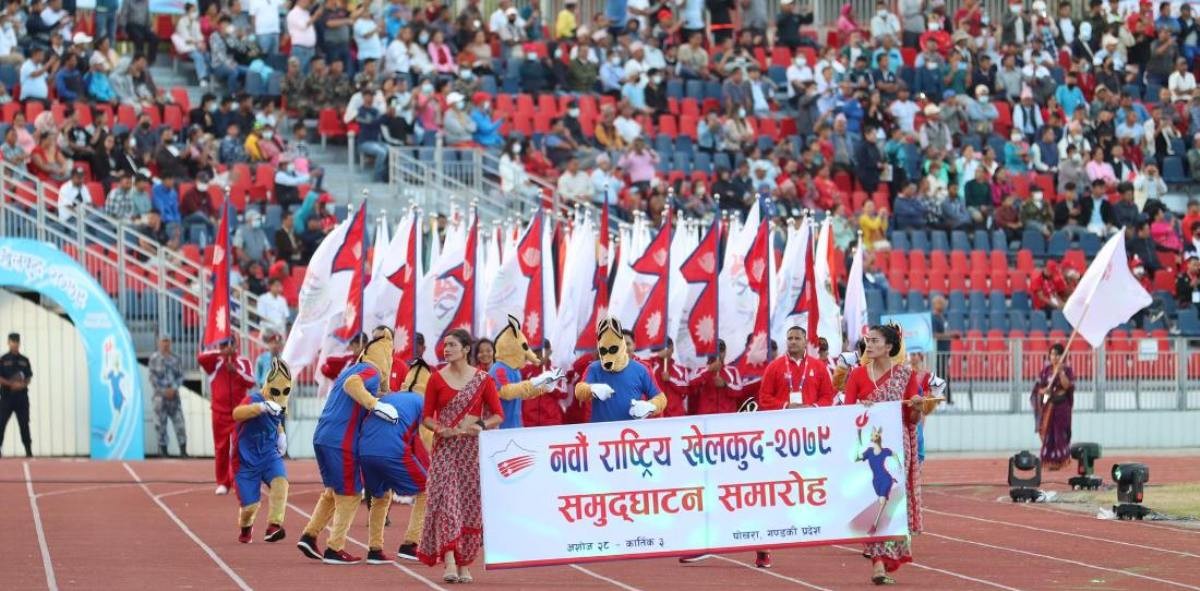 काठमाडौं । गण्डकी प्रदेशको राजधानी पोखराकाे पाेखरा रंगशलामा नेपाली खेलकुदको कुम्भमेला नवौँ राष्ट्रिय खेलकुद प्रतियोगिताको उद्घाटन भएको छ । शुक्रबार विशेष समारोहकाबीच नवौँ राष्ट्रिय खेलकुदको औपचारिक उद्घाटन गरिएको हो ।
