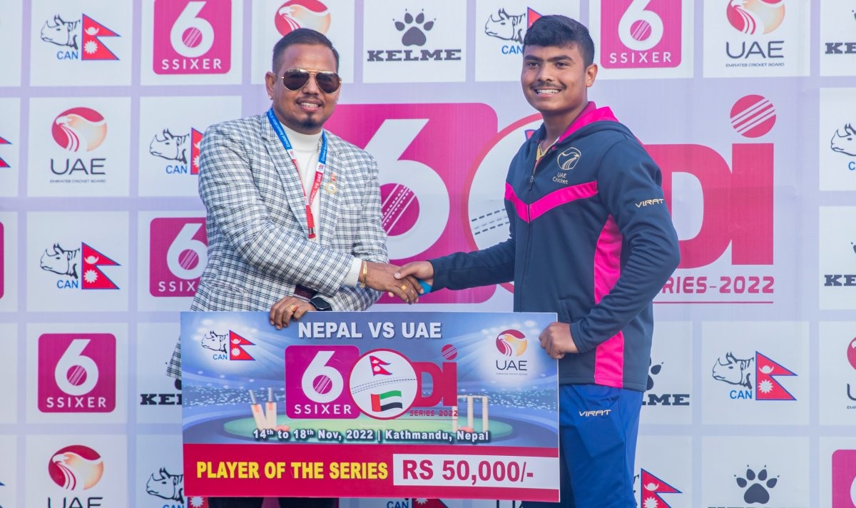 नेपालले युएईले ९३ रन जोड्दा ९ विकेट लिएको थियो । तर, युएईका आयान अफजल खान र हजरत बिलालले अन्तिम विकेटका लागि अविजित ८३ रनको साझेदारी गरेपछि युइए सम्मानजनक स्कोरमा पुगेको थियो । युएईका आयन अफजल खान प्लेयर अफ द सिरिज बनेका छन् ।