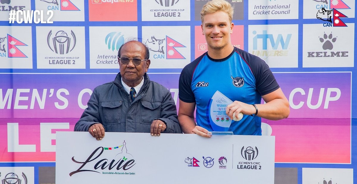 नामिबियाका लागि रुबेन ट्रम्पलम्यानले ९.४ ओभरमा ३० रन खर्चेर ५ विकेट लिए । ओडिआईमा दोस्रो पटक पाँच विकेट लिएका ट्रम्पलम्यानको यो ओडिआई करिअरको उच्च प्रदर्शन हो । रुबेन ट्रम्पलम्यान ‘प्लेयर अफ द म्याच’ भए । अर्का तीव्र गतिका बलर टांगेनी लुगांमेनीले ९ ओभरमा ५८ रन खर्चेर २ विकेट लिएका थिए ।