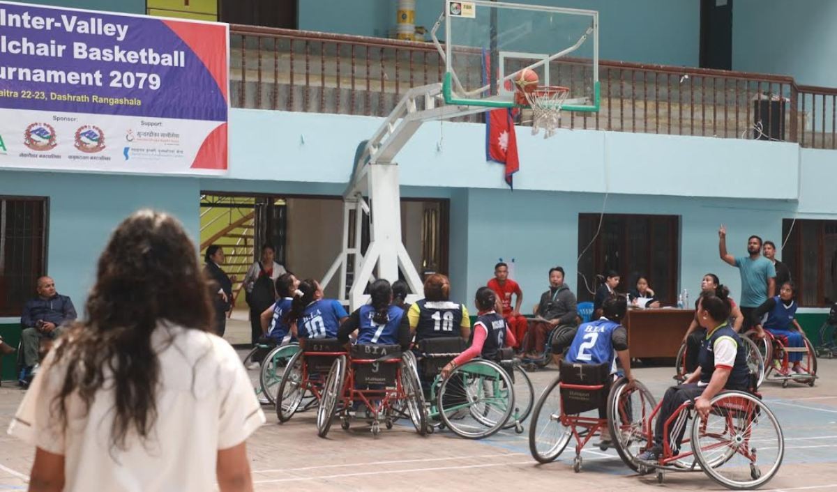 काठमाडौं । नेपाल स्पाईनल कर्ड इन्जुरी स्पोर्टस् एशोसियसनको आयोजनामा आज बुधवारबाट त्रिपुरेश्वरस्थित कभर्डहलमा इन्टरभ्याली ह्विलचेयर बास्केटबल टुर्नामेन्ट २०७९ मा सुरु भएको छ ।