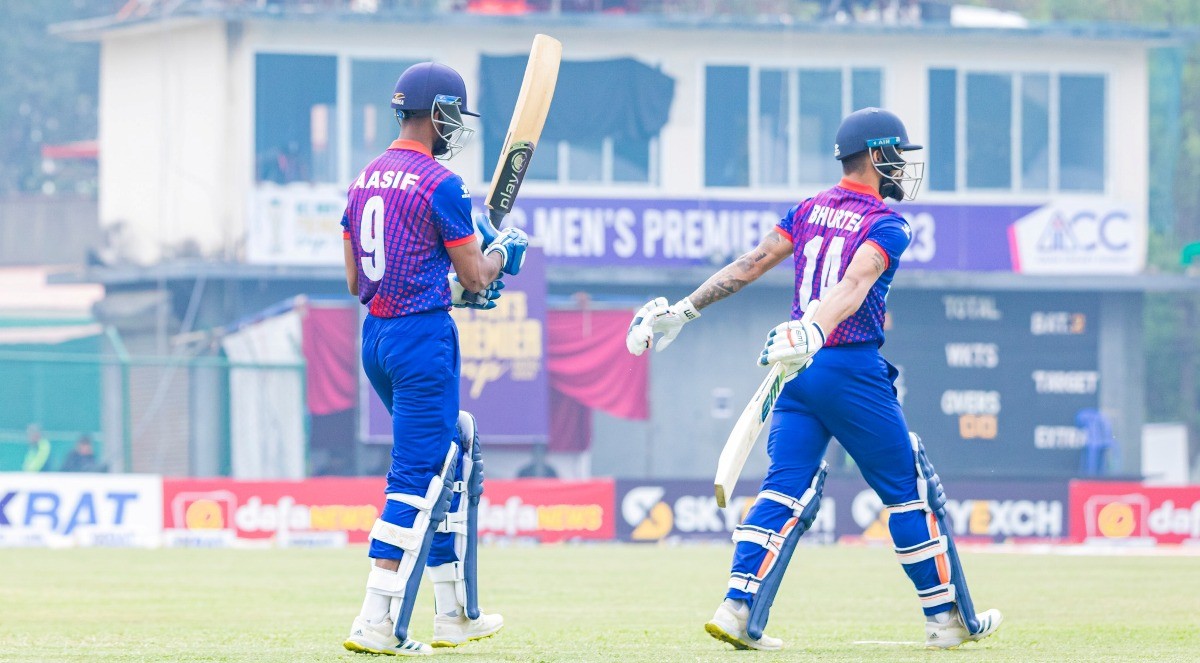 सुरुआत राम्रो हुन नसकेको नेपालका मध्येक्रमका ब्याटरहरुले राम्रो साझेदारी गरेर नेपाललाई बलियो स्थितिमा पुर्याएका थिए । नेपाल खाता नखोल्दै दुवै ओपनर कुशल भुर्तेल र आसिफ शेखलाई गुमाउँदा दबाबमा आएको थियो । नेपालले पहिलो रन २८ औं बलमा जोडेको थियो ।