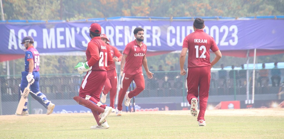 नेपाल यसअघि ओमानविरुद्ध ५९ बलमै शतक हानेका युवा अलराउन्डर कुशल मल्ल ३ रनमा आउट भएपछि संकटमा पुगेको थियो । कतारका लागि आमिर फारुकले ९.३ ओभरमा ४२ रन खर्चेर सर्वाधिक ४ विकेट लिएका थिए । क्वाइस अहमदले १० ओभरमा ३६ रन खर्चेर ३ विकेट लिए । गयान मुनाविराले ७ ओभरमा ३८ रन खर्चेर २ विकेट लिएका थिए । इक्रामउल्लाह खानले १० ओभरमा २८ रन खर्चेर १ विकेट लिए ।