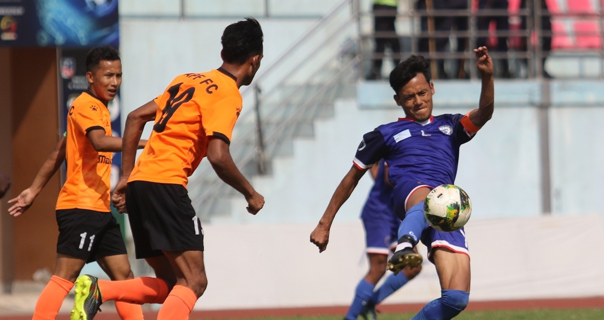 दशरथ रंगशालामा शनिबार सम्पन्न खेलमा एपीएफ फुटबल क्लब र थ्री स्टार क्लबले १-१ गोलको बराबरी खेल्दै अंक बाडेका छन् । खेलको २३ औं मिनेटमा कप्तान नविन लामाको पासमा मणि कुमार लामाले उत्कृष्ट गोल गर्दै एपीएफलाई सुरुआती अग्रता दिलाएका थिए ।