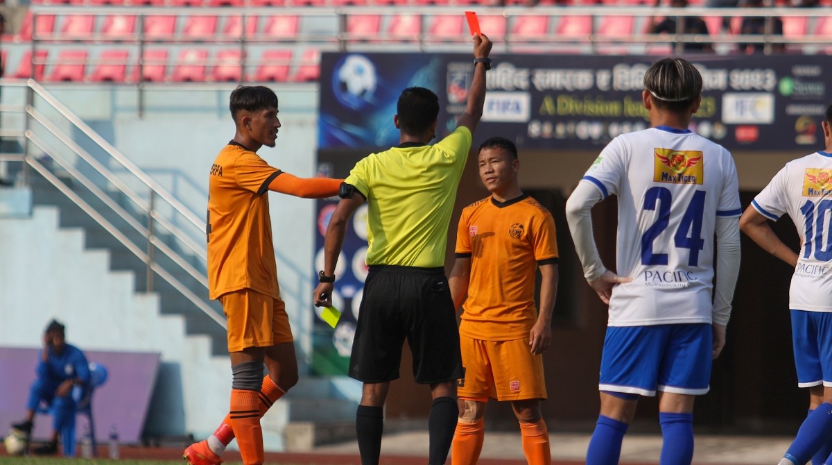 खेलको अन्त्यतिर दुवै टोली १० खेलाडीमा सिमित भएका थिए । ८२ औं मिनेटमा मछिन्द्रका गोलकिपर विशाल श्रेष्ठ रातो कार्ड ब्यहोर्दै मैदानबाट बाहिरिए भने त्यसको तीन मिनेटपछि नै हिमालयन शेर्पाका निशान लिम्बुले पनि रातो कार्ड ब्यहोरेपछि दुवै टोली १० खेलाडीमा समेटियो ।