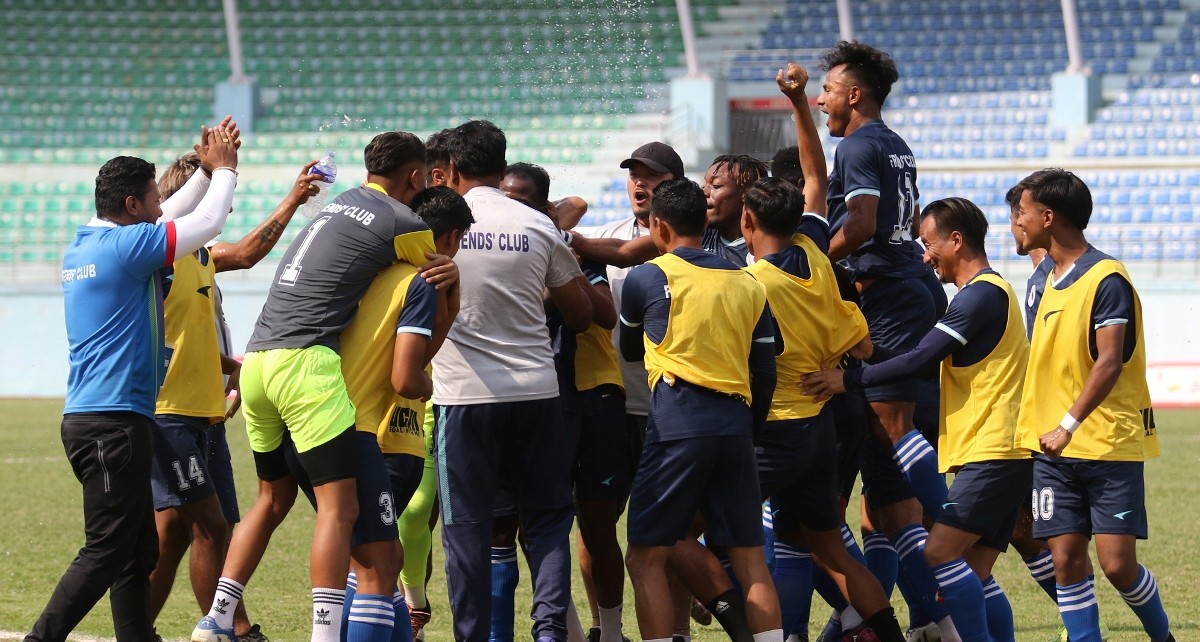 काठमाडौं । कतार एयरवेज सहिद स्मारक ‘ए’ डिभिजन लिग फुटबलमा एपिएफमाथि शानदार जितसँगै फ्रेन्ड्स क्लब रेलिगेशनबाट जोगिएको छ । त्रिपुरेश्वरस्थित दशरथ रंगशालामा शुक्रबार भएको खेलमा विभागीय एपिएफ फुटबल क्लबलाई ४-० गोल अन्तरले हराउँदै ललितपुरे फ्रेन्ड्स रेलिगेशनबाट जोगिएको हो ।