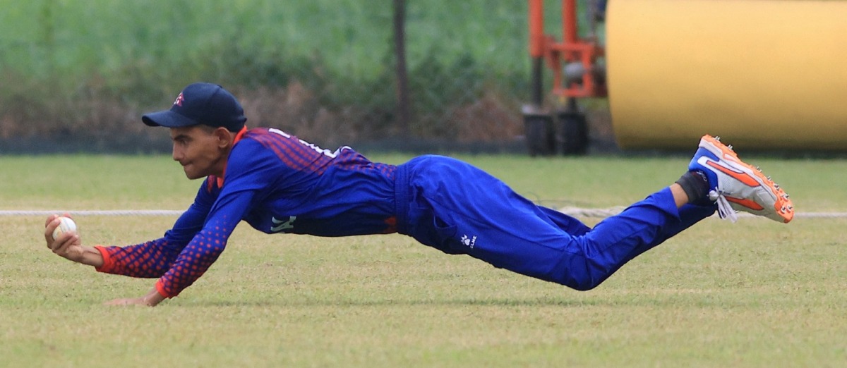 नरेन भट्ट ४३ बलमा १ चौकासहित २९ रनमा आउट भएका थिए । सूर्यांशु कोइराला २६ बलमा ५ चौकासहित २९ रनमा आउट भएका थिए । नेपालका दीपु कुमार १५ रनमा, निरज कुमार यादव ८ रनमा, प्रतिक भट्टराई ४ रनमा, विकेटकिपर आषिश लुहार गोल्डेन डक र सन्तोष यादव शून्यमा एलबीडब्लू आउट भएका थिए ।