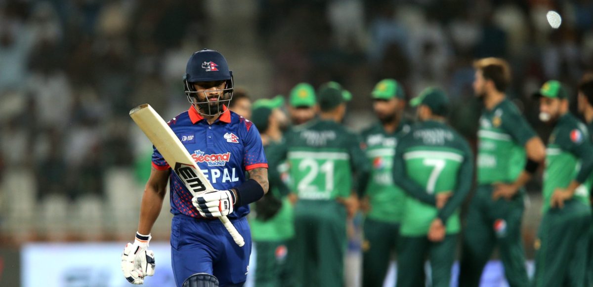 नेपालका दीपेन्द्रसिंह ऐरी ३ रनमा, कुशल मल्ल ६ रनमा, सन्दीप लामिछाने र ललित राजवंशी डक आउट भएका थिए । करण केसी ७ रनमा नट आउट रहेका थिए । पाकिस्तानका लागि शादब खानले ६.४ ओभरमा २७ रन खर्चेर सर्वाधिक ४ विकेट लिएका थिए । शाहिन शाह अफ्रिदीले ५ ओभरमा २७ रन खर्चेर २ विकेट लिए । हरिस रौफले २ विकेट, नसिम शाह र मोहम्मद नवाजले समान १/१ विकेट लिएका थिए ।